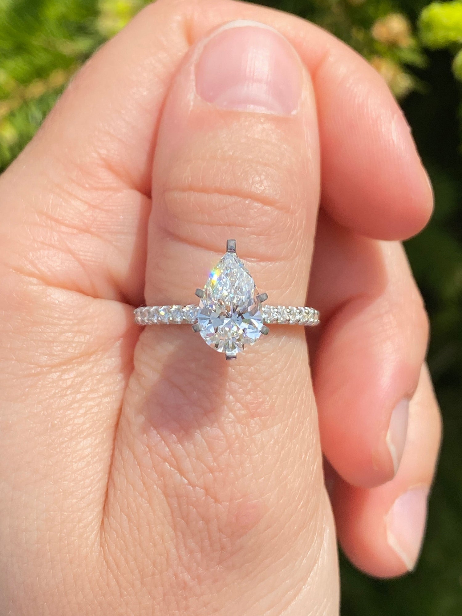 A pear-cut beauty featuring a 1.54 ct center stone, set in a classic prong setting for maximum brilliance. The delicate pavé band adds the perfect touch of sparkle.