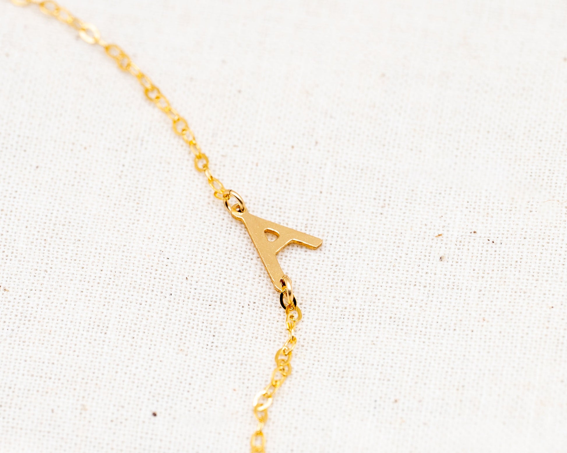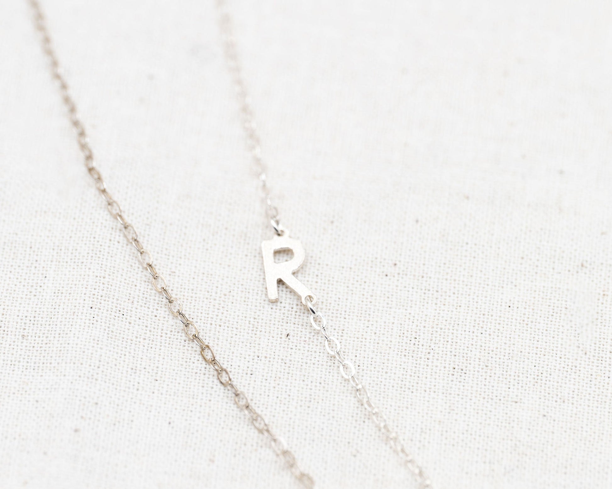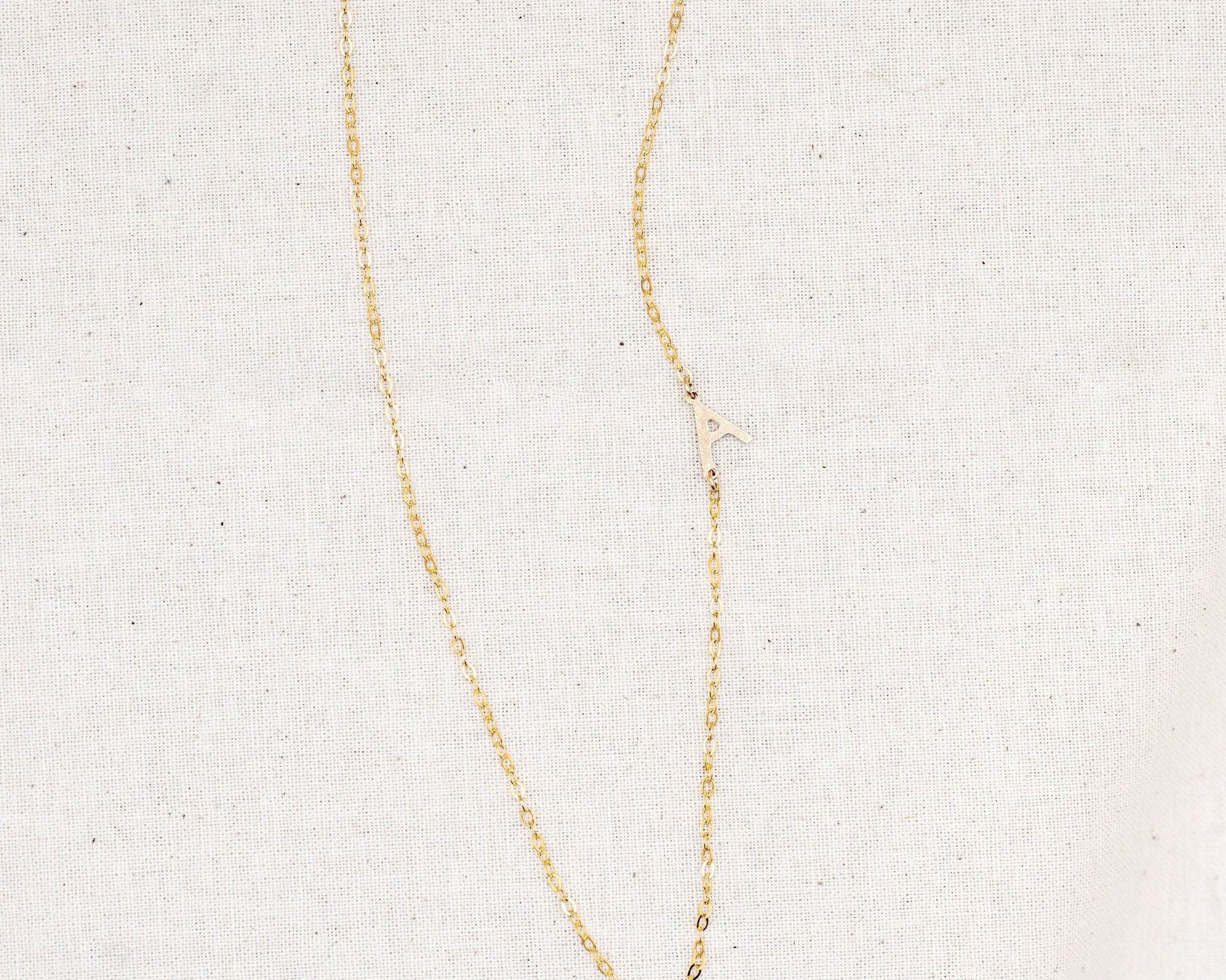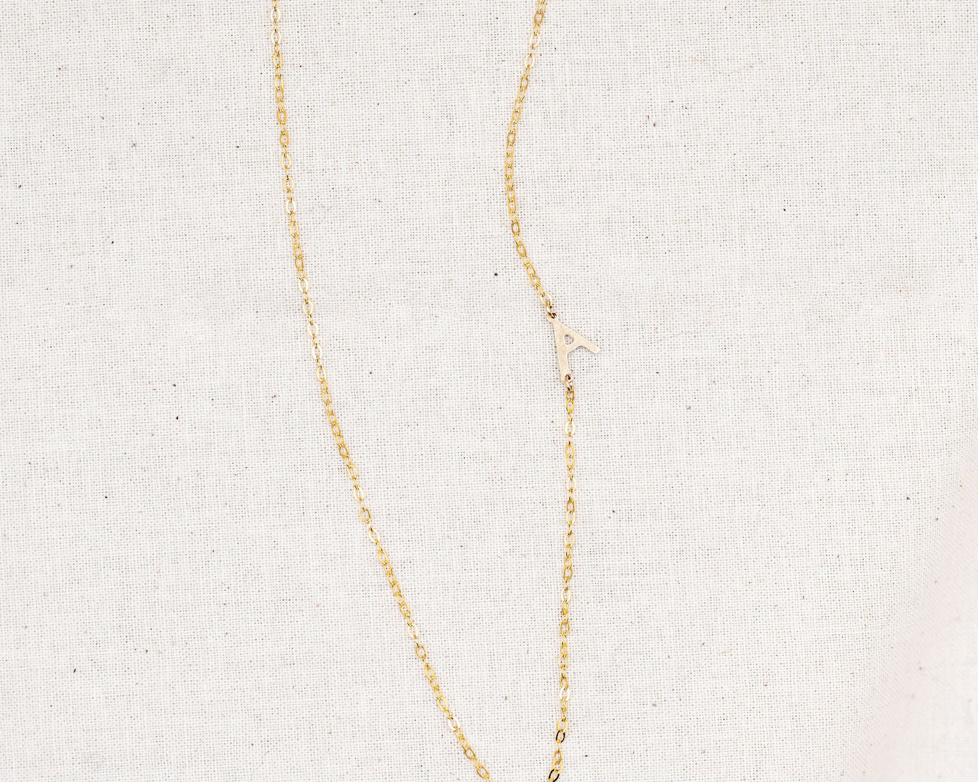 Our Asymmetrical Initial Necklace is a fresh new take on the classic initial necklace. You can customize your own with up to 5 different characters. These are perfect everyday necklaces for you or a loved one. Choose from a dainty sterling silver or gold filled chain.