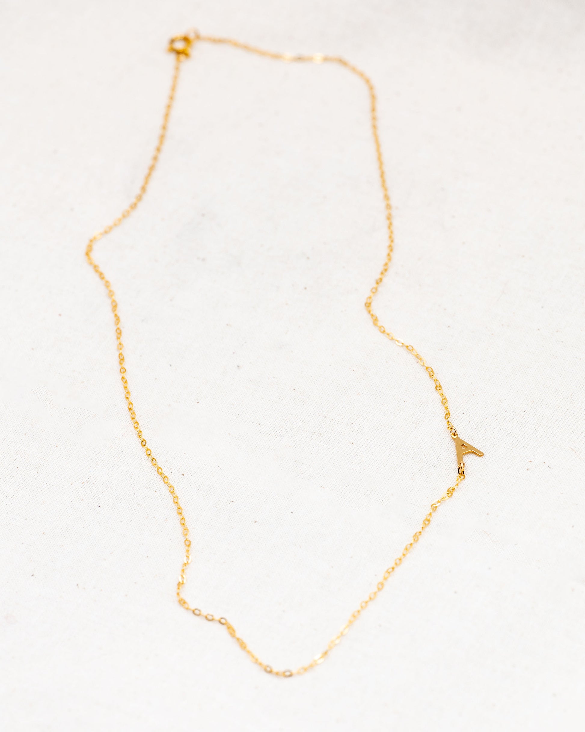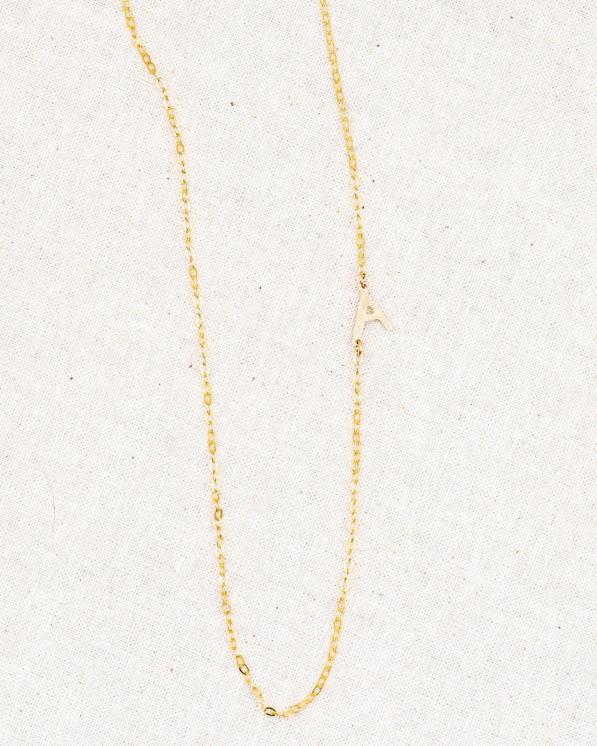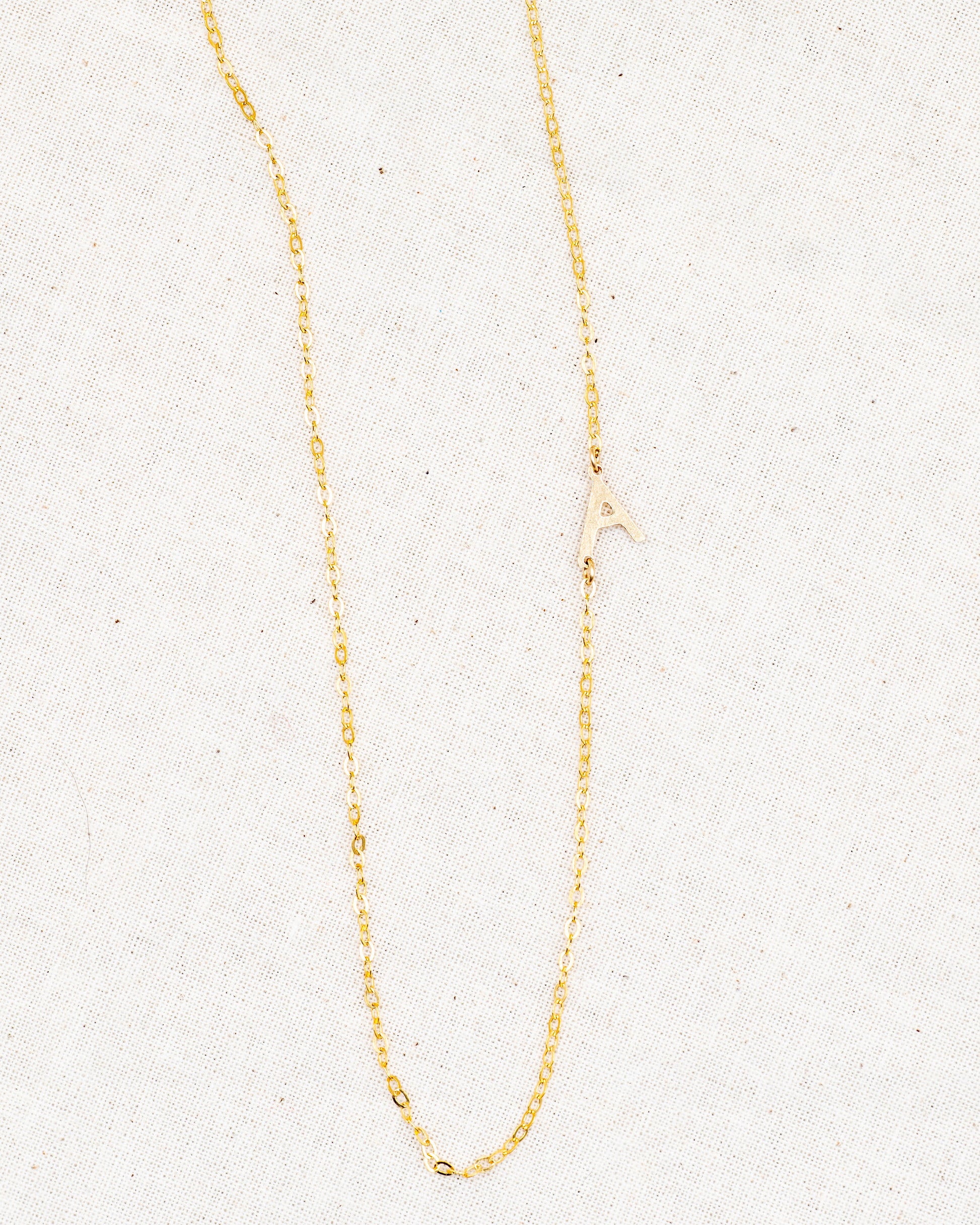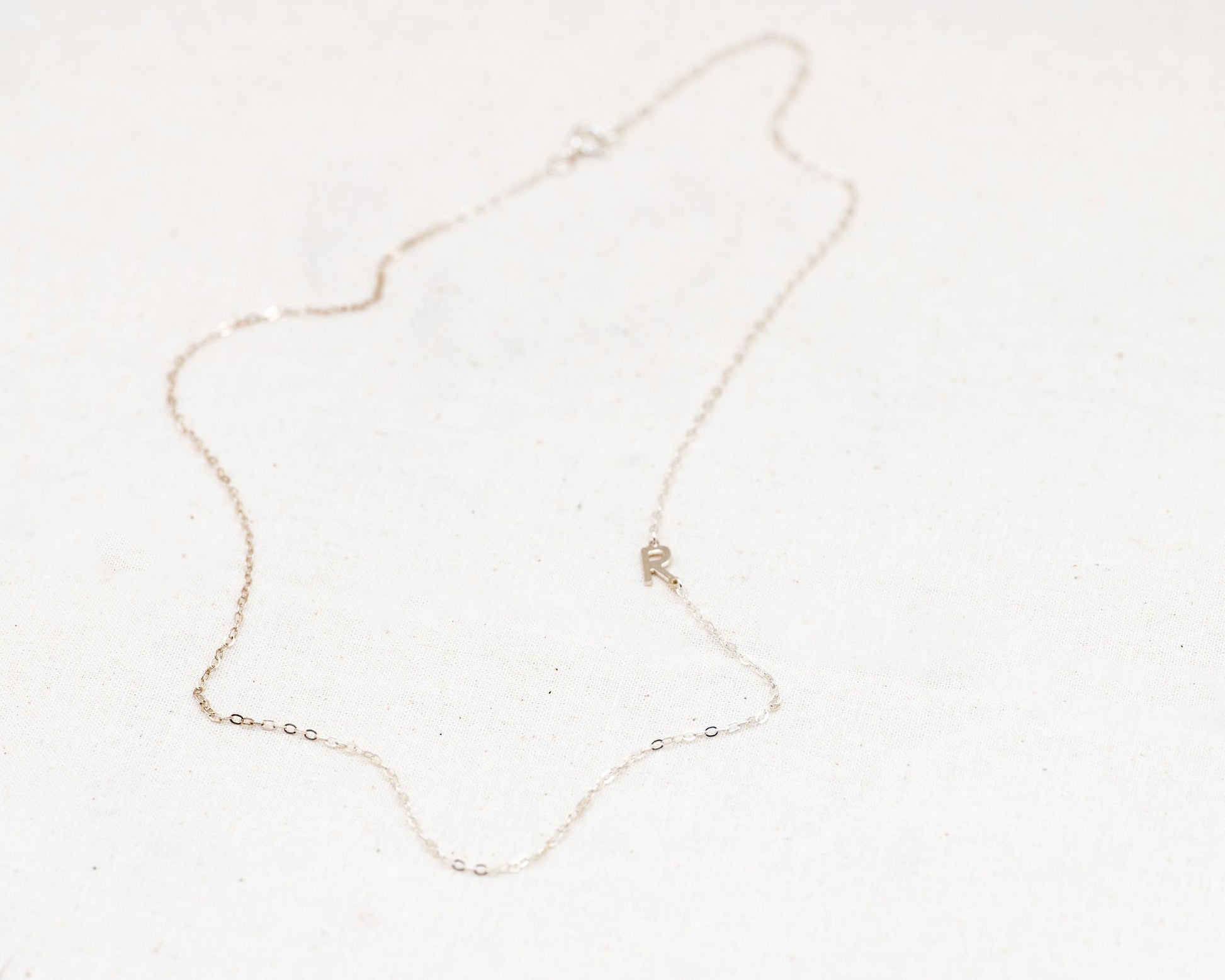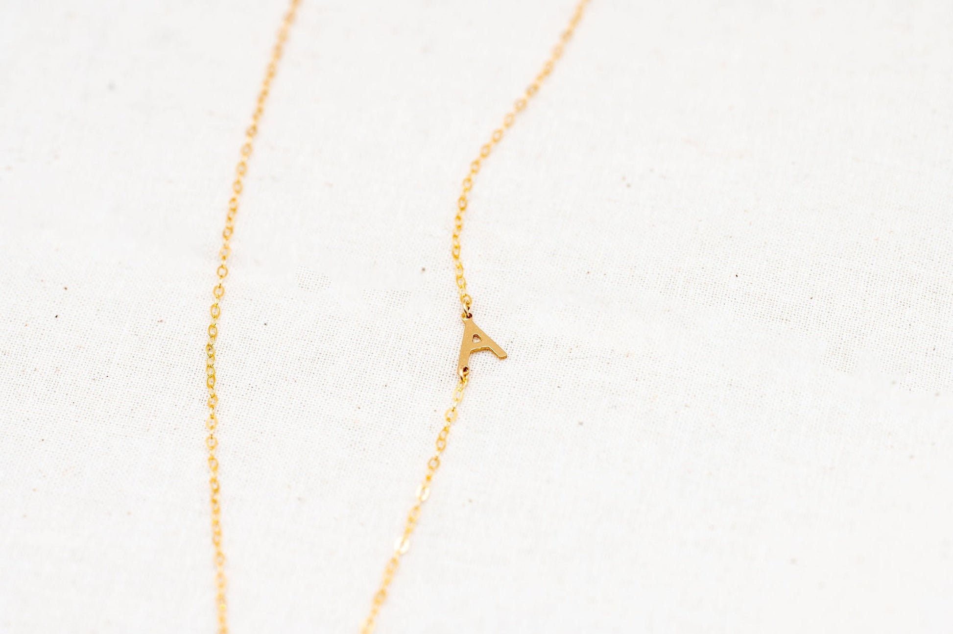 Our Asymmetrical Initial Necklace is a fresh new take on the classic initial necklace. You can customize your own with up to 5 different characters. These are perfect everyday necklaces for you or a loved one. Choose from a dainty sterling silver or gold filled chain.