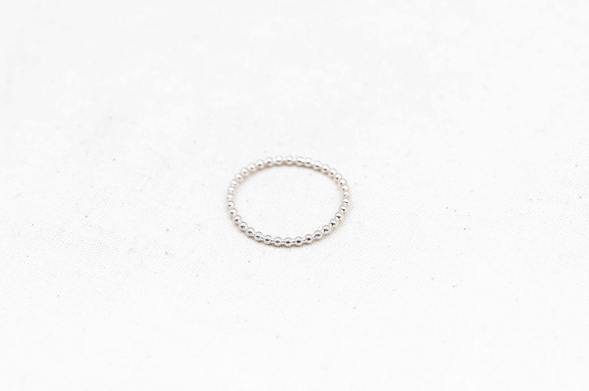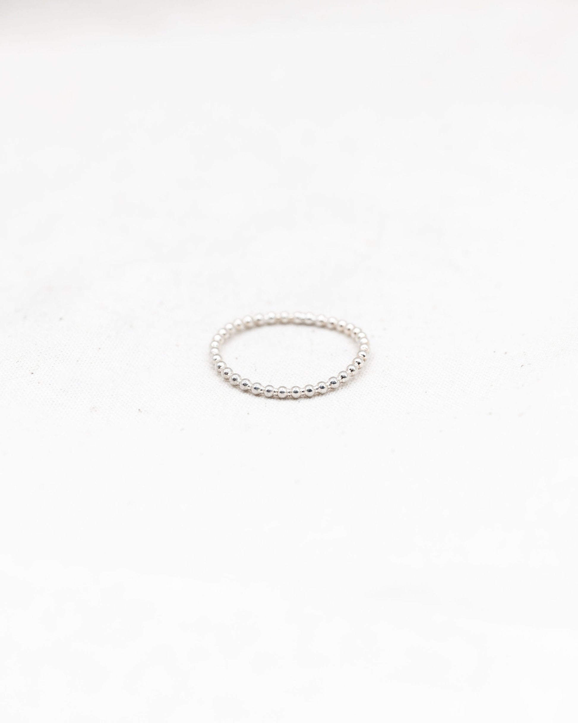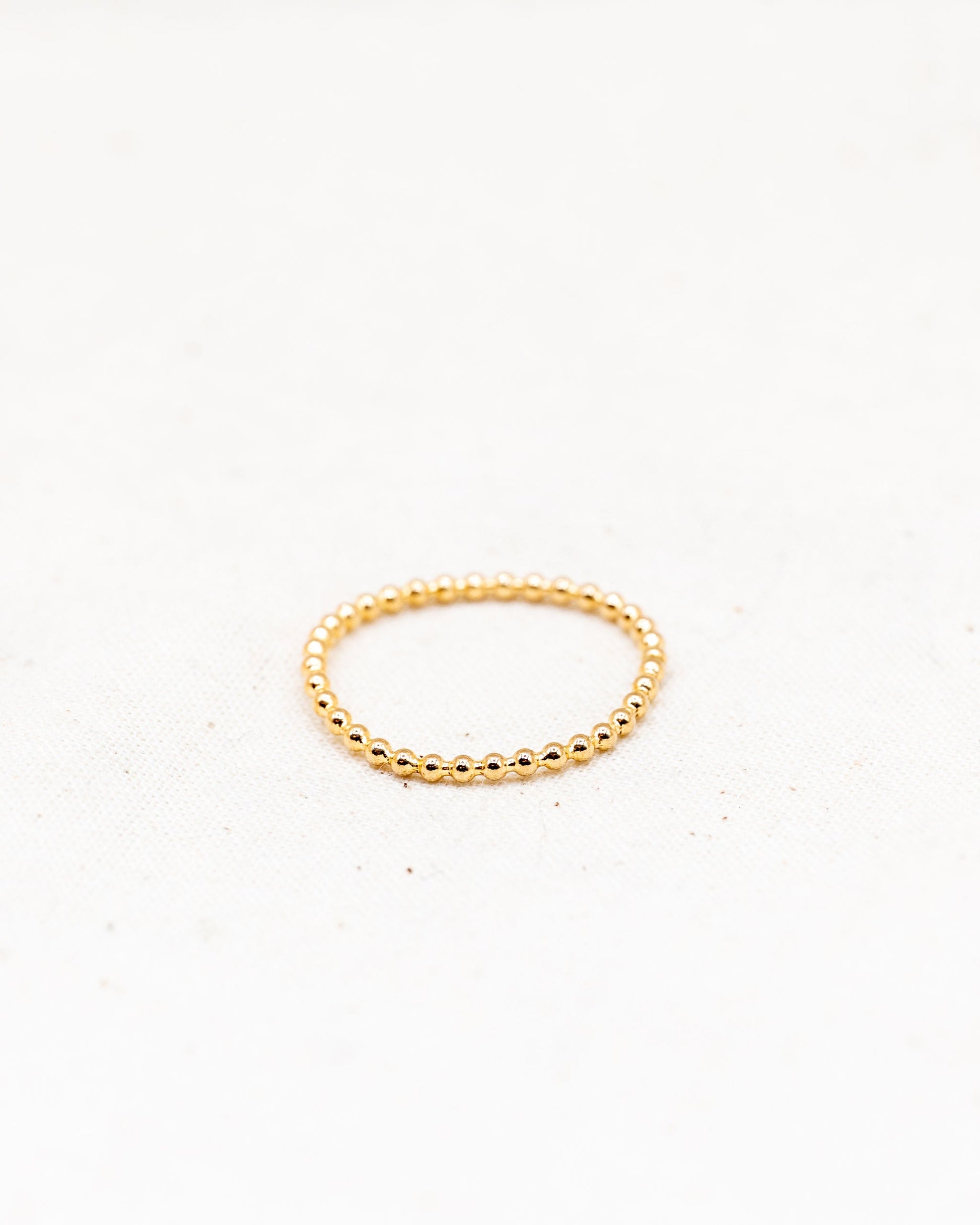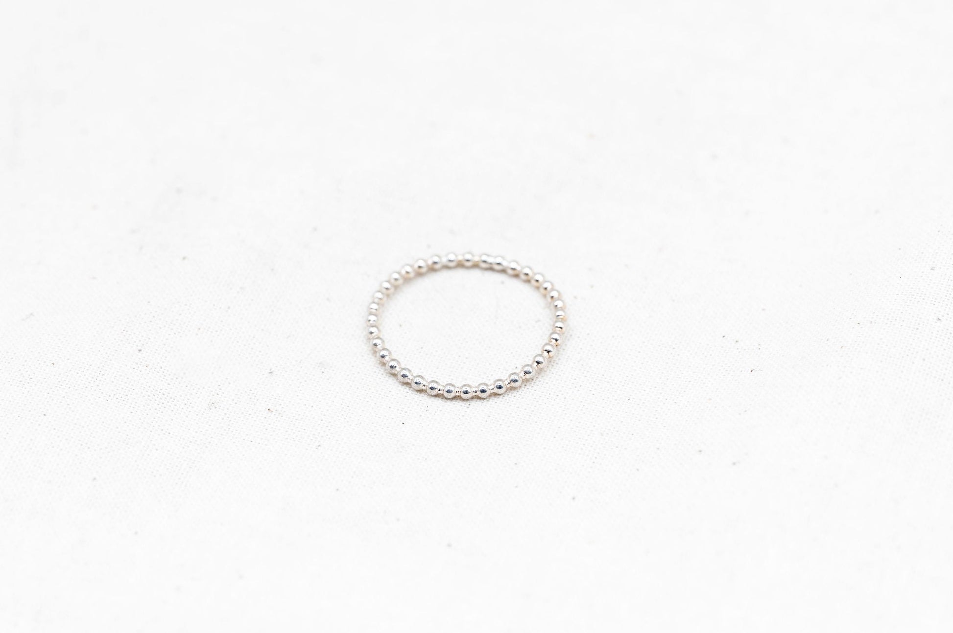 This ring has a beaded wire pattern that gives it a simple and dainty look, the ideal design for stacked ring arrangements. It looks great alone or paired with our other rings for a more unique look.