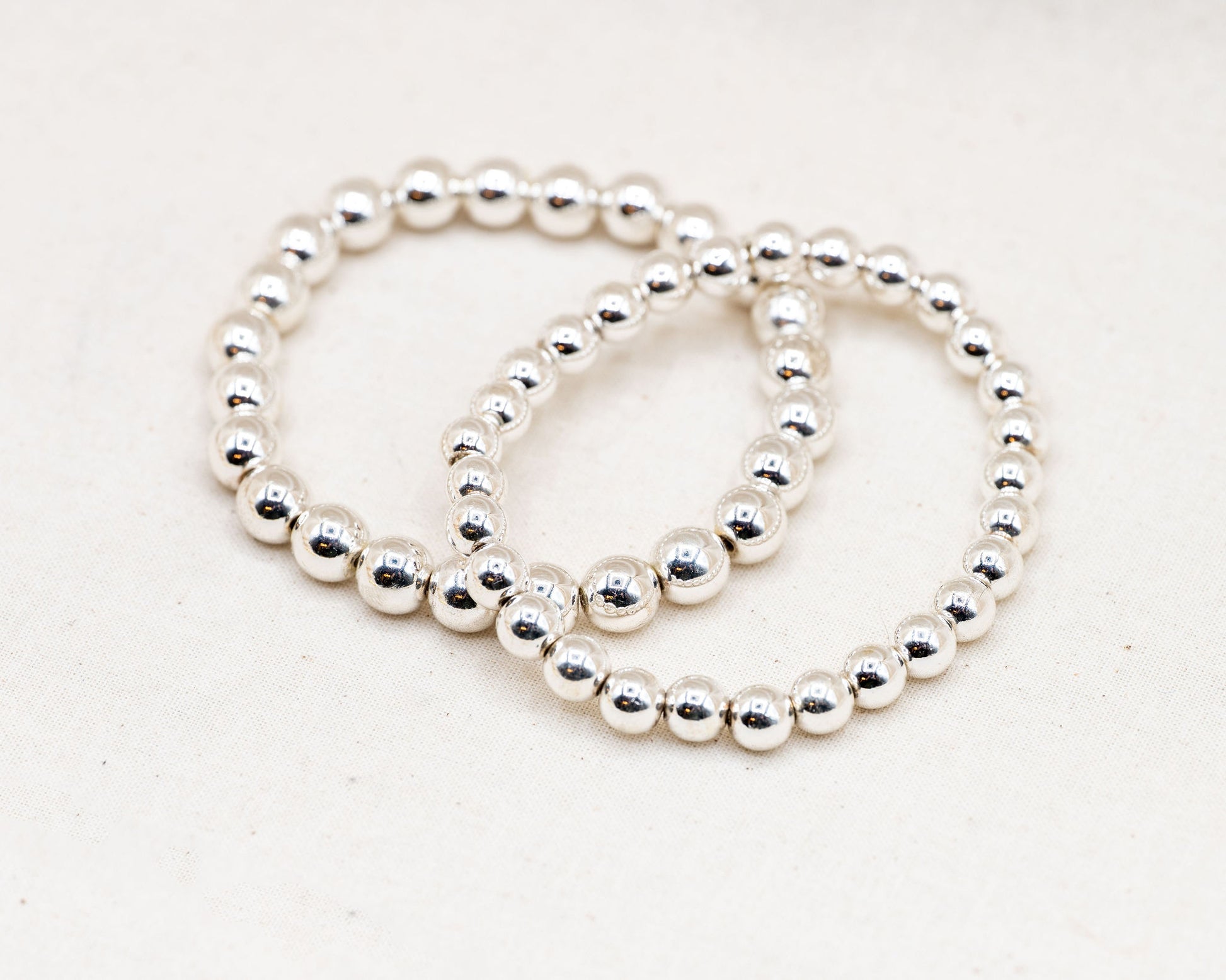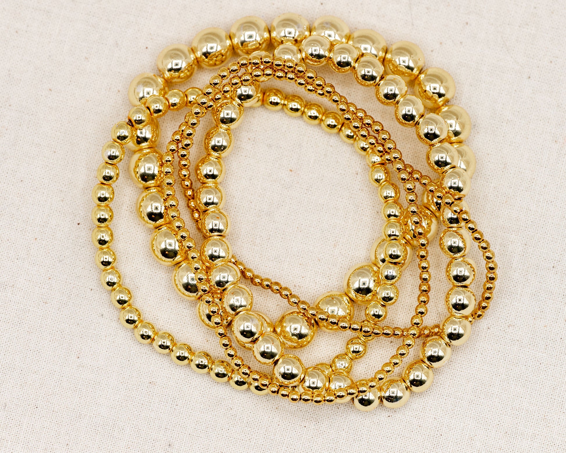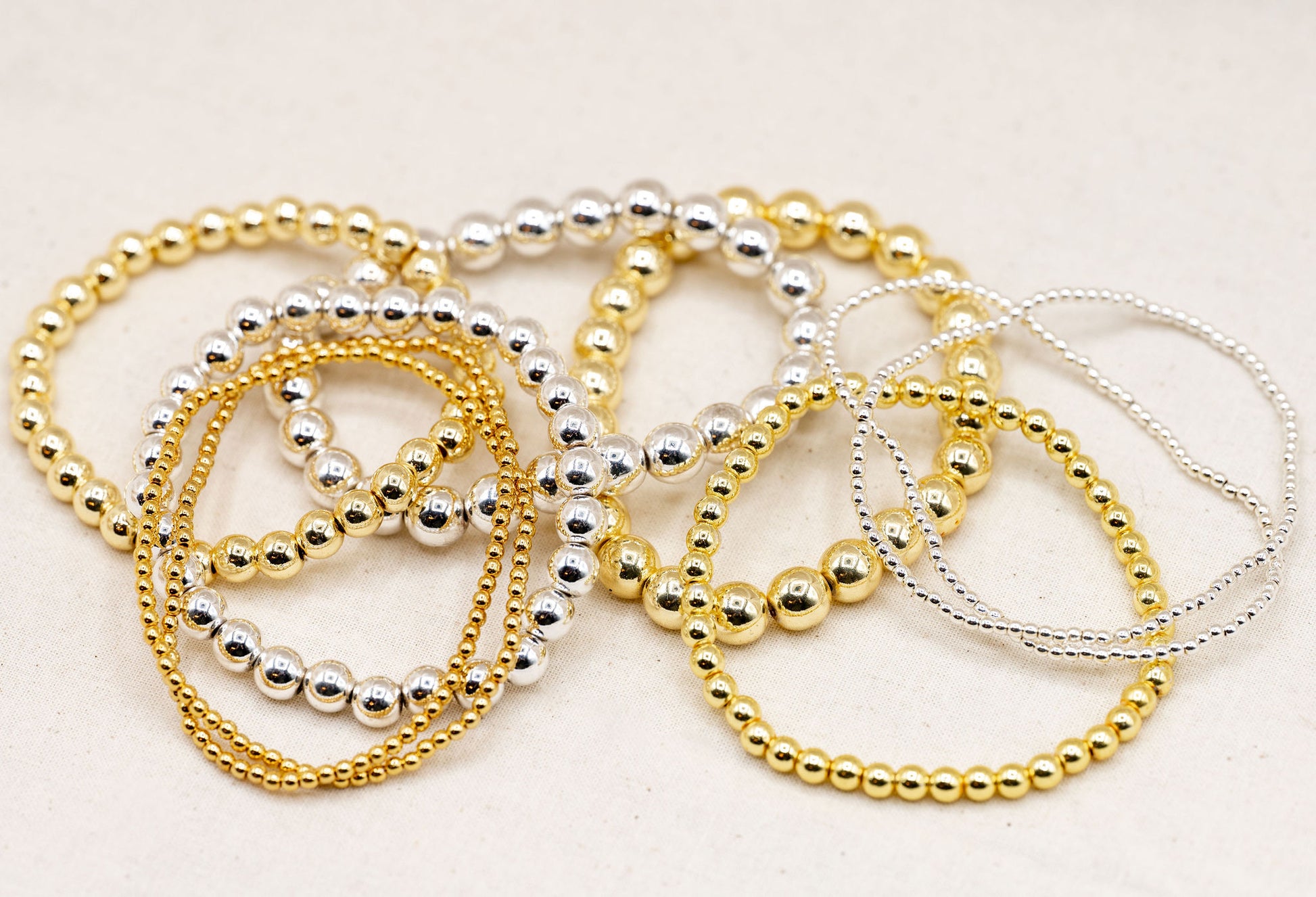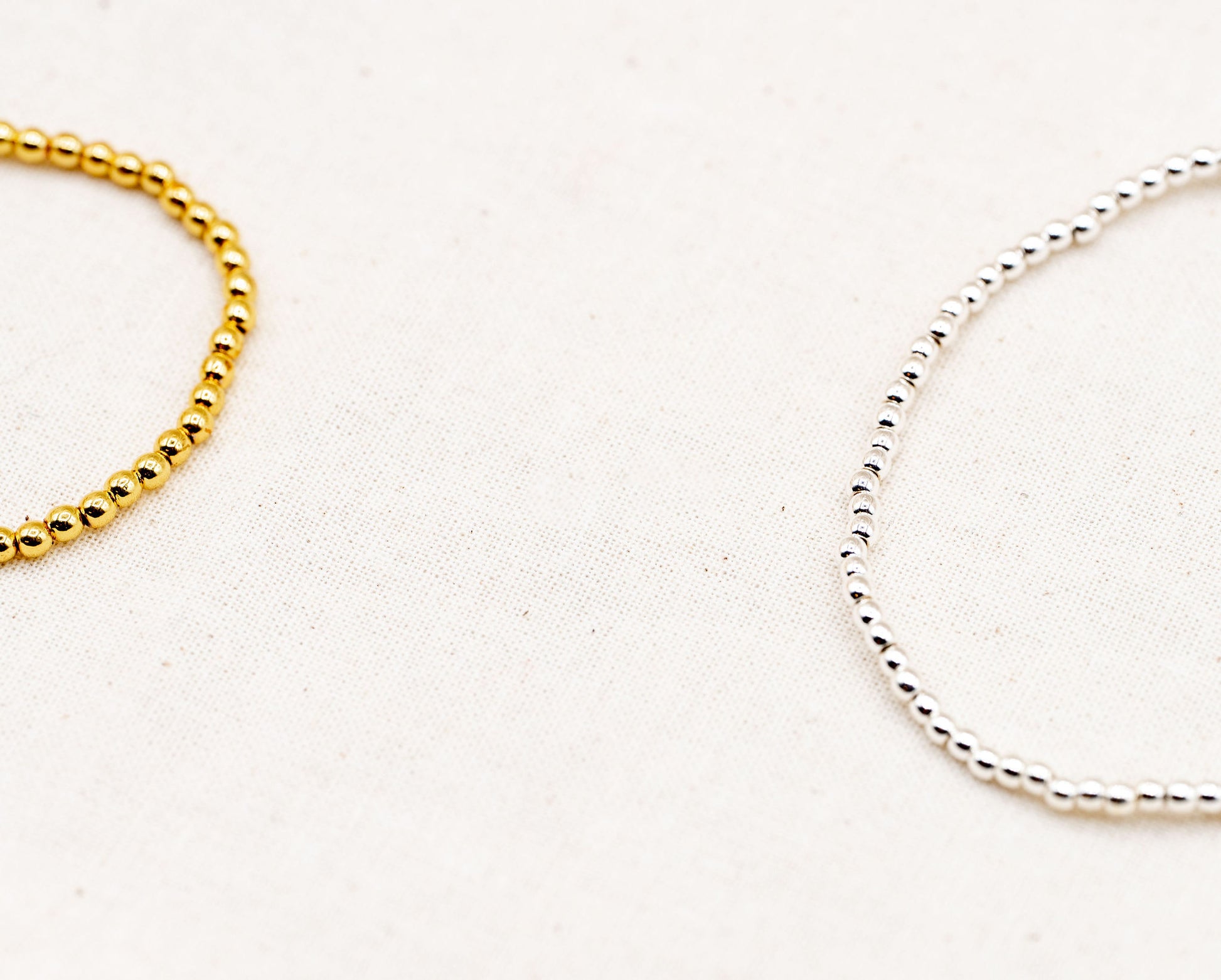 These stretch bracelets are made with silver or gold plated hematite beads. Hematite beads are a natural stone that can help with grounding, removing negative energy, increasing confidence, and decreasing stress.