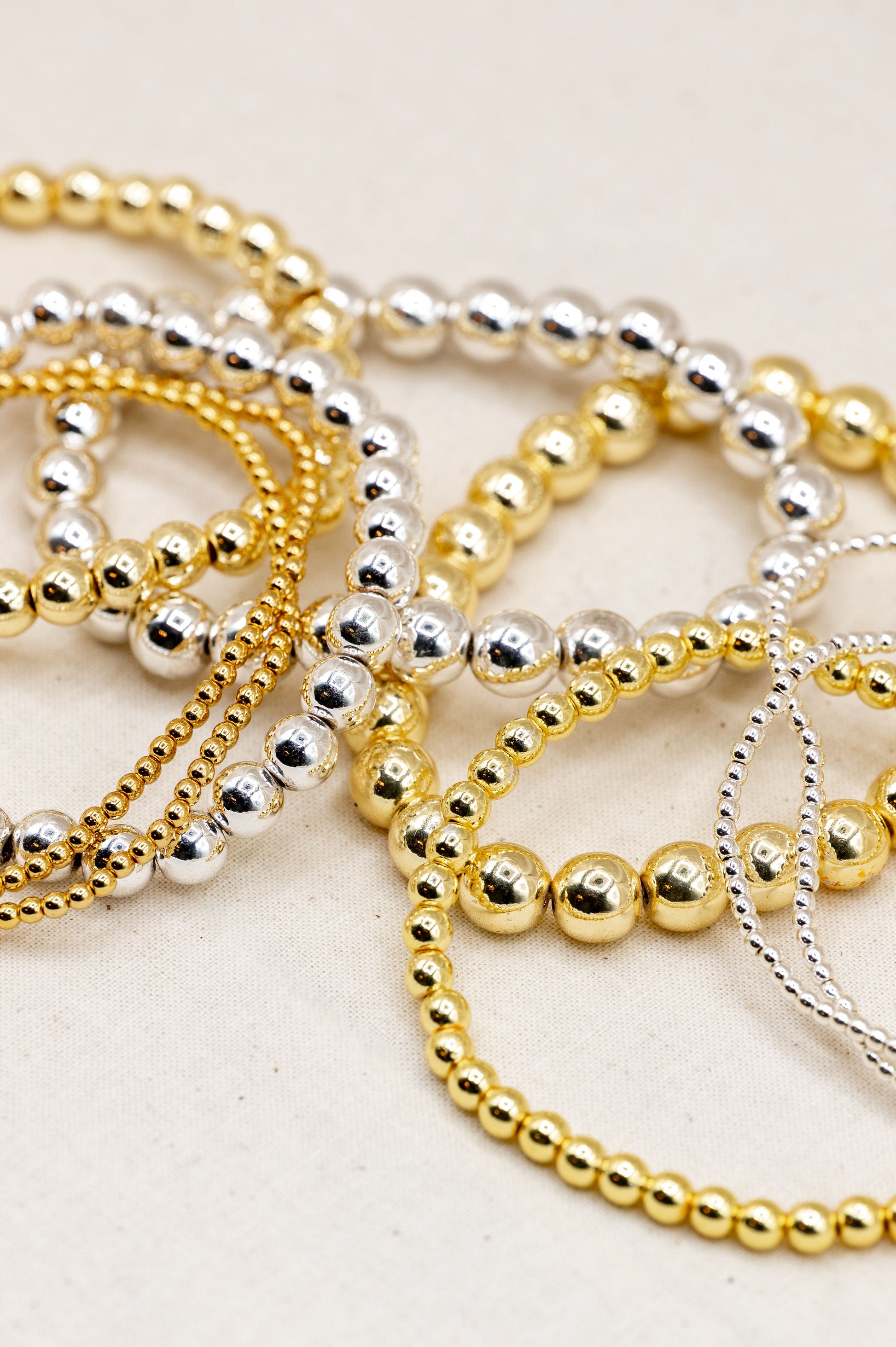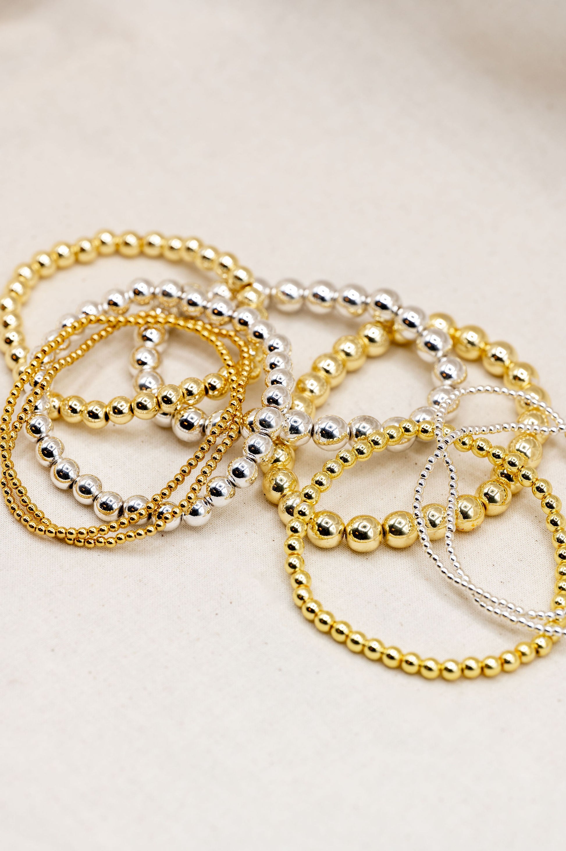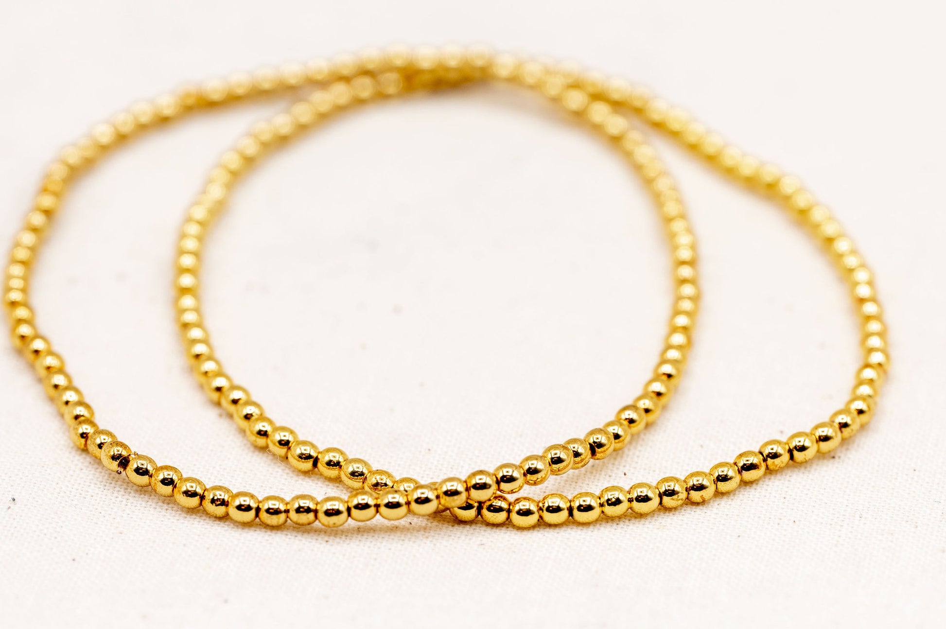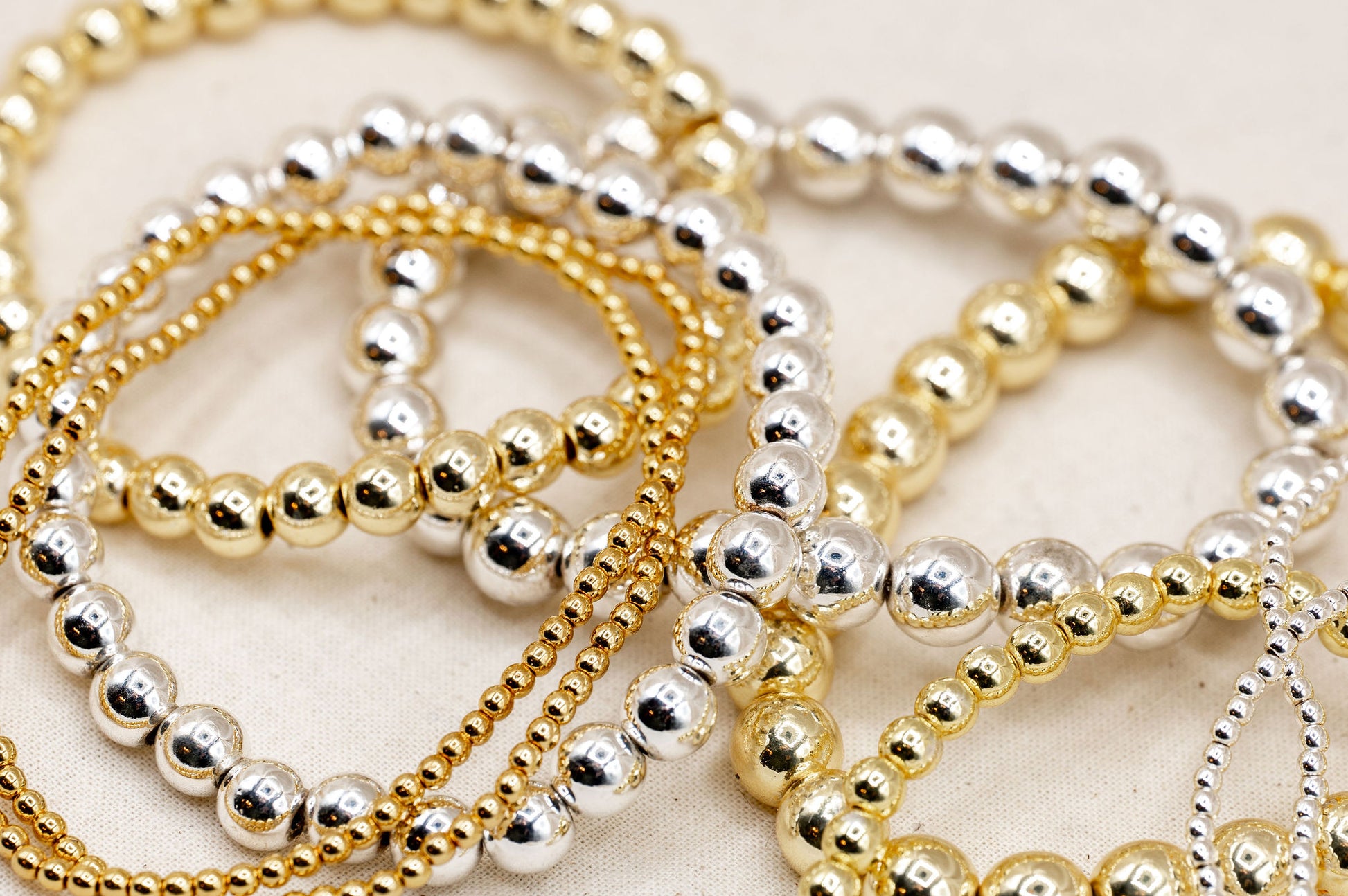 These stretch bracelets are made with silver or gold plated hematite beads. Hematite beads are a natural stone that can help with grounding, removing negative energy, increasing confidence, and decreasing stress.