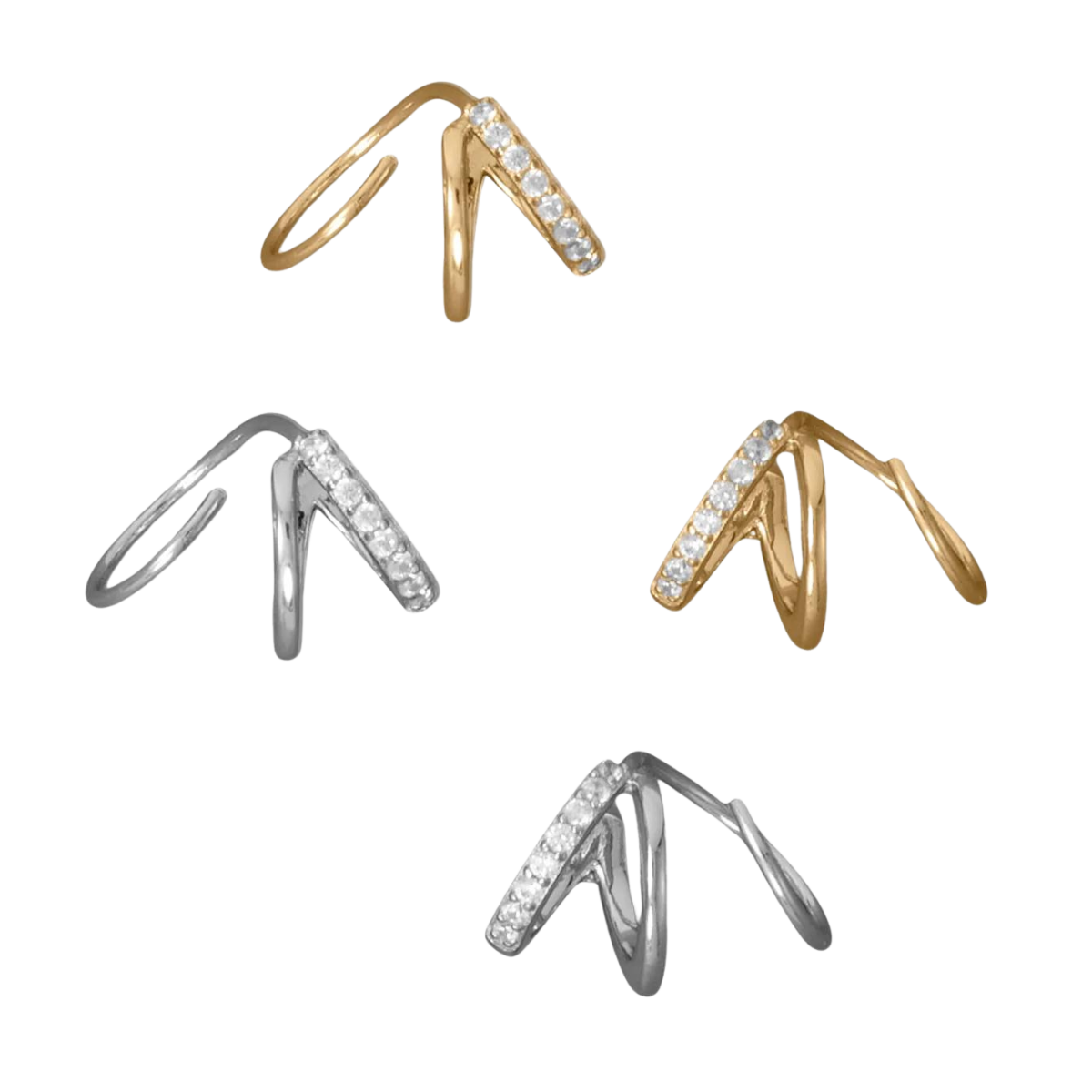 Elevate your jewelry collection with the Illusion Twist Earrings, expertly designed to create the captivating effect of a double piercing without the need for multiple holes. Adorned with carefully placed Cubic Zirconia accents, they catch the light beautifully, adding a subtle yet striking sparkle.
