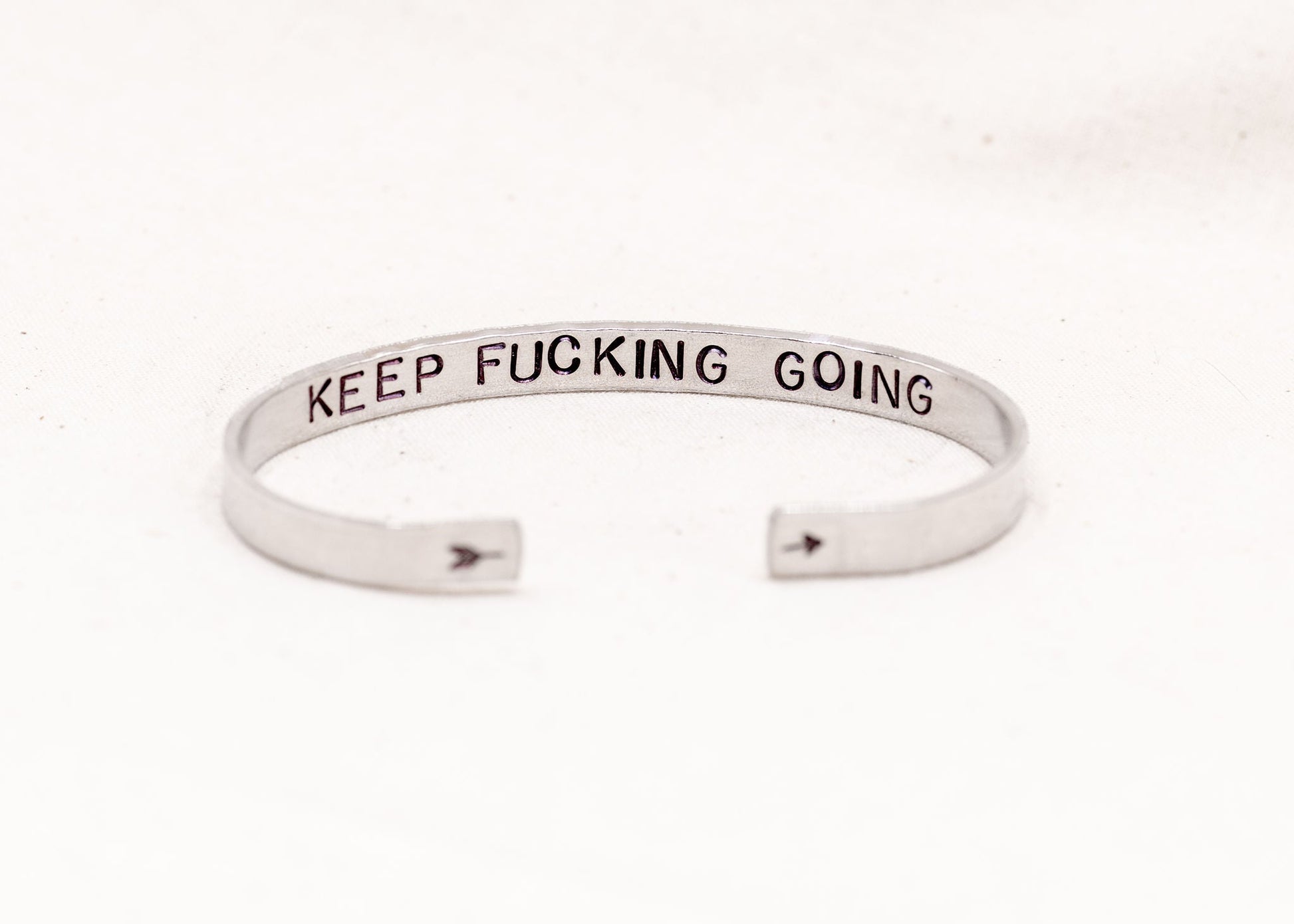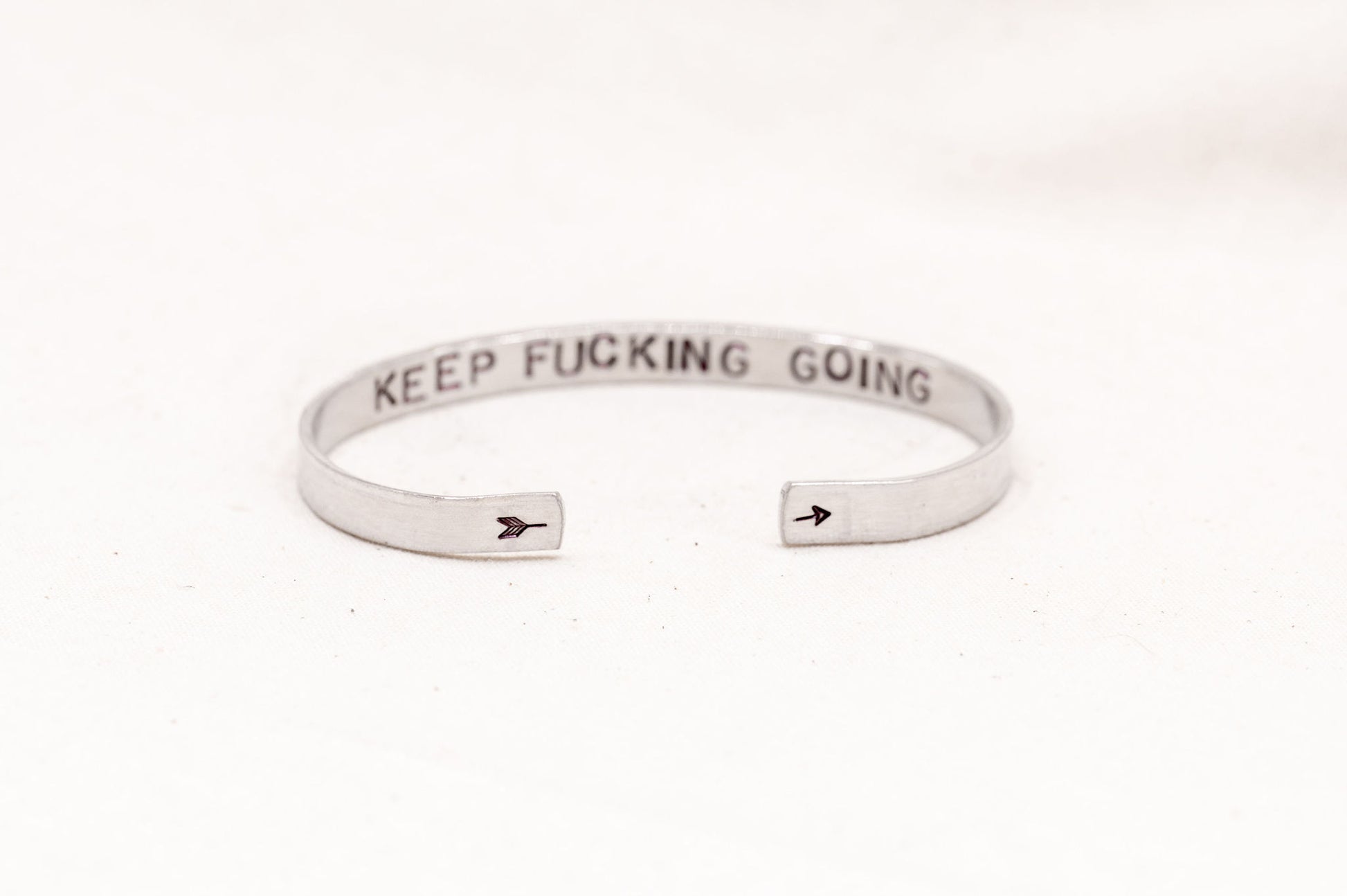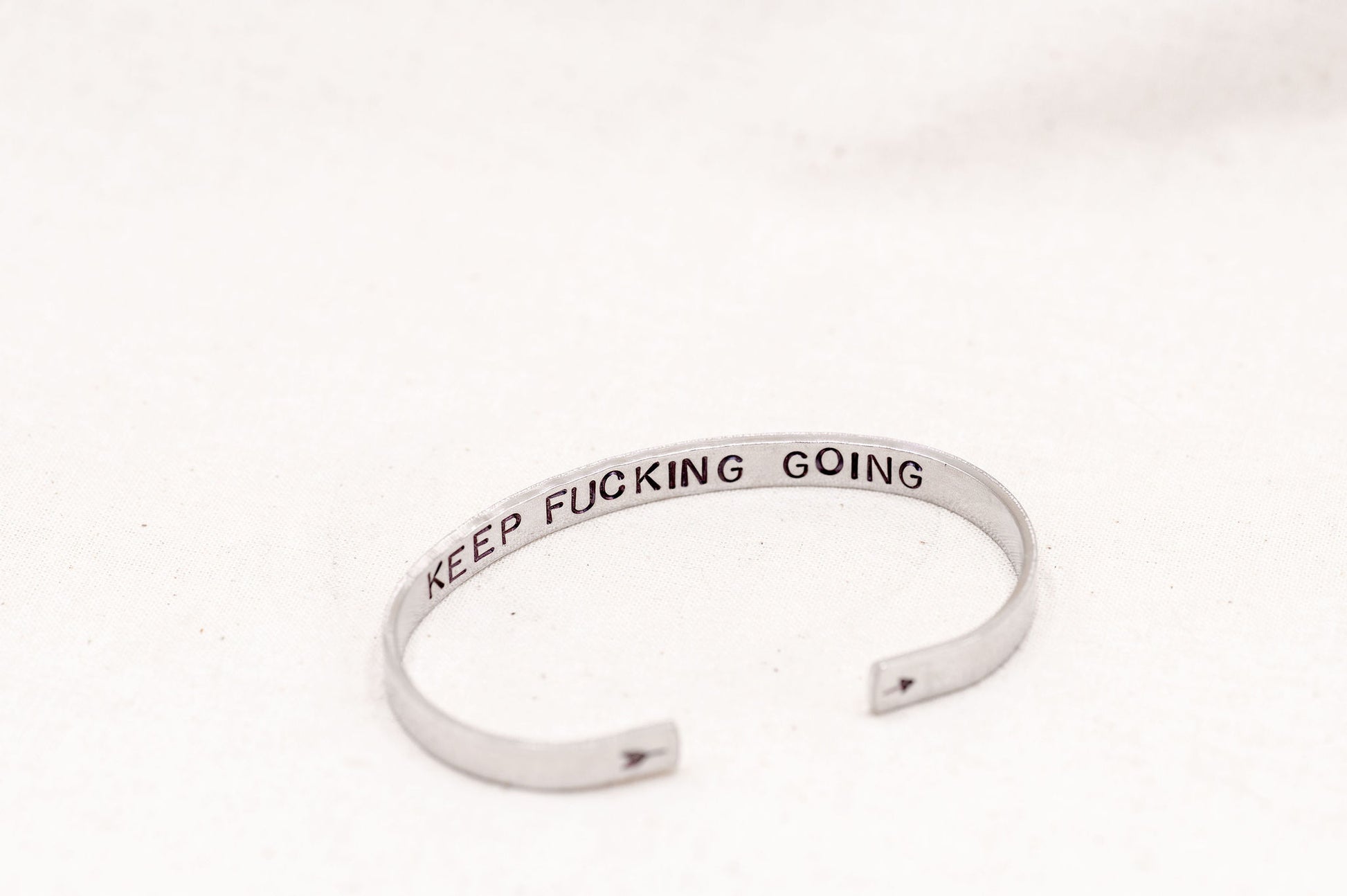 Wear this cuff as a reminder to "Keep Fucking Going" because let's face it... we all need a reminder every now and again.