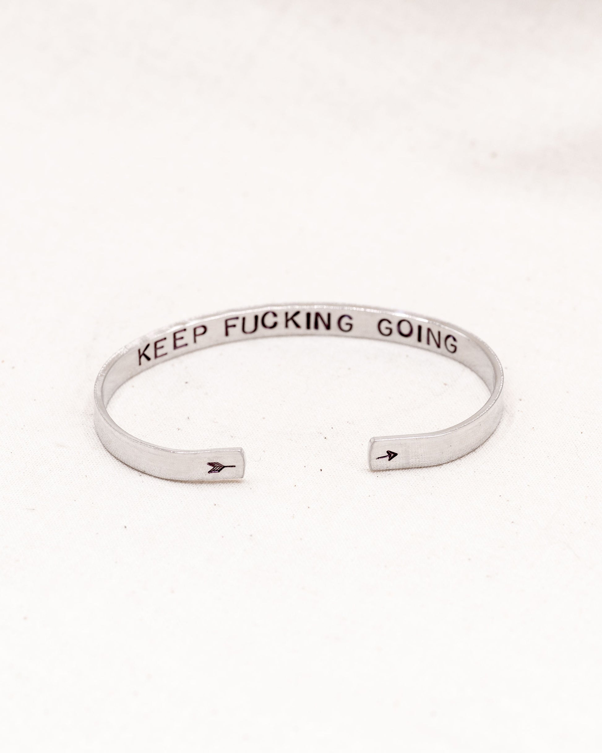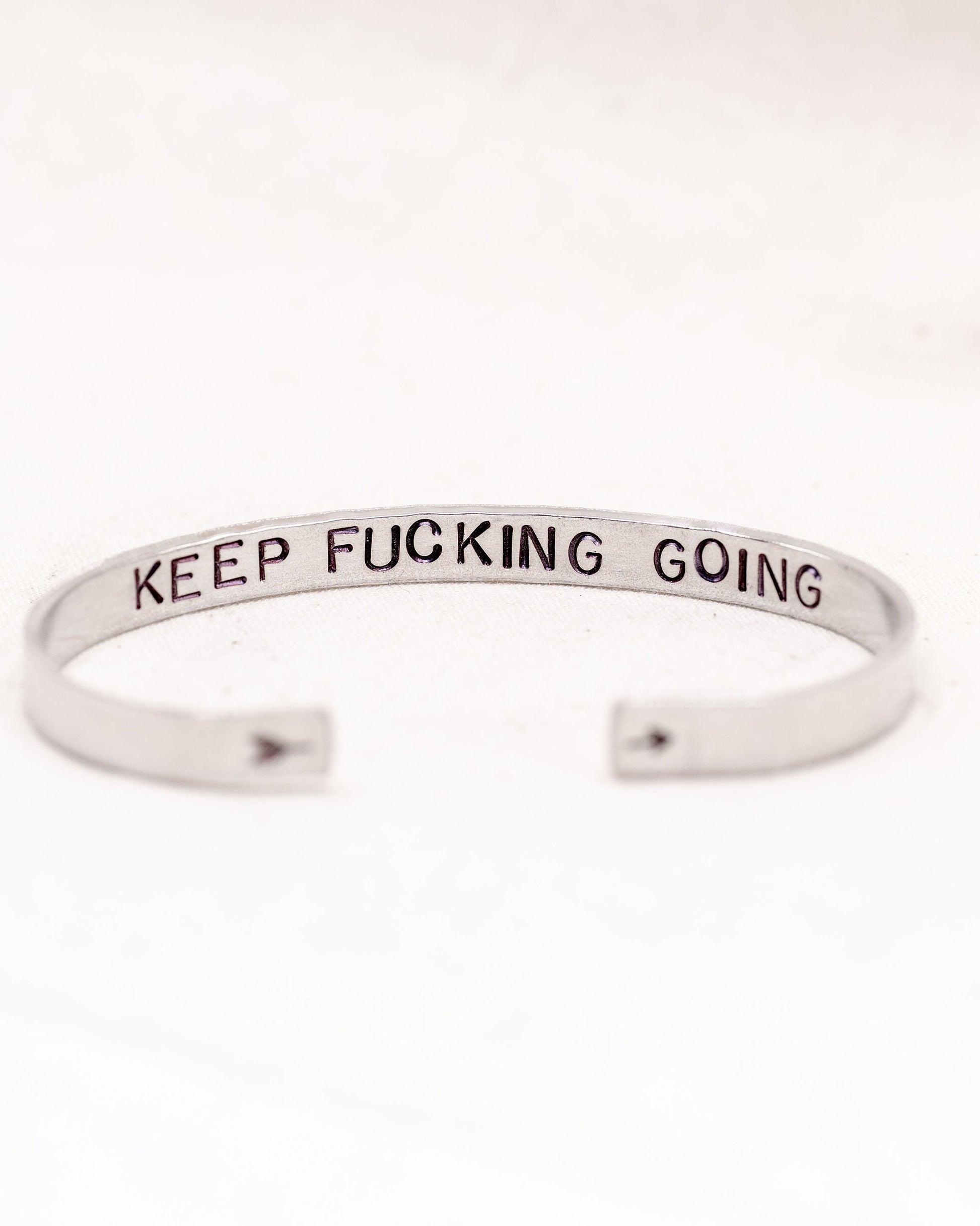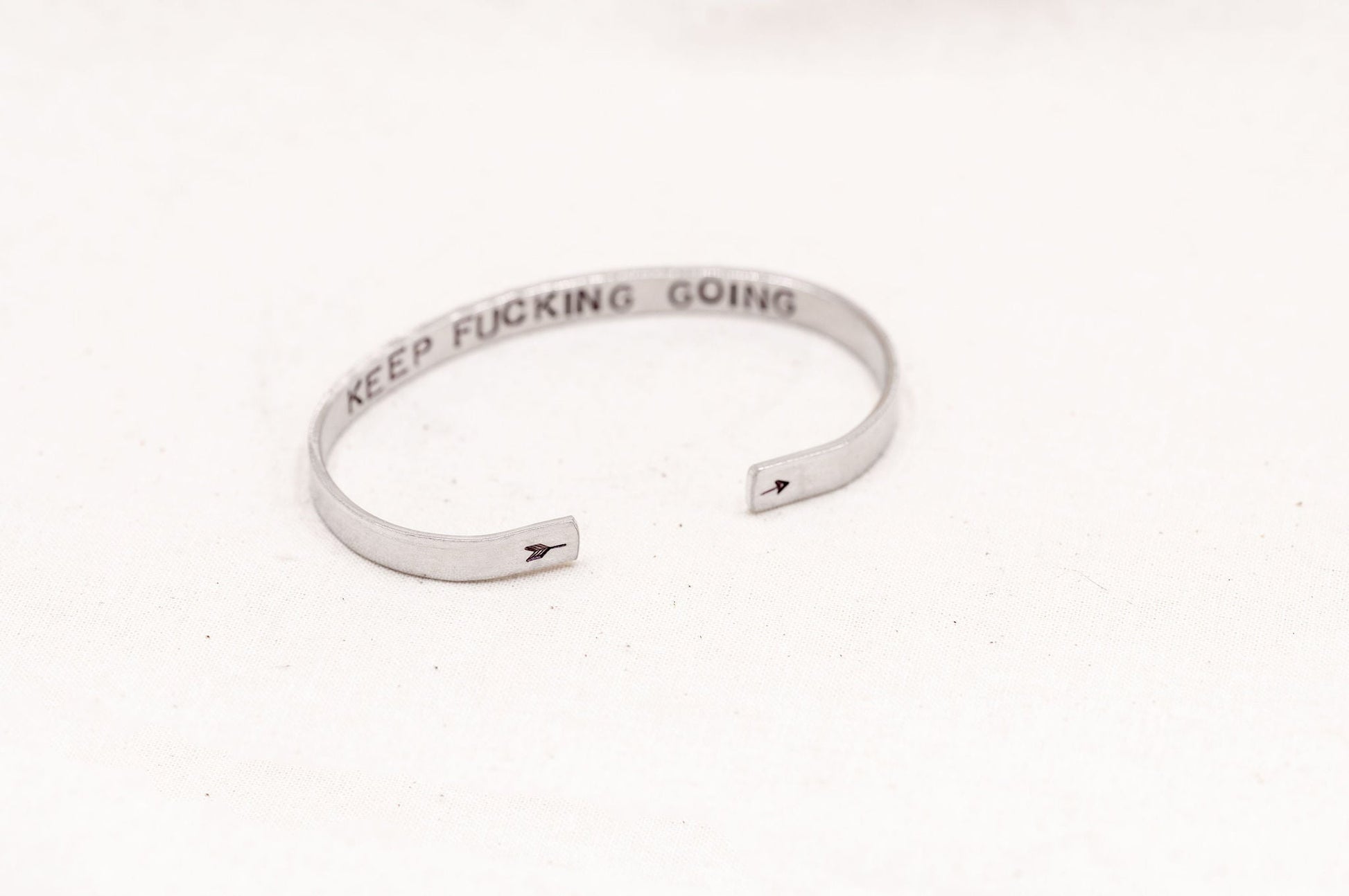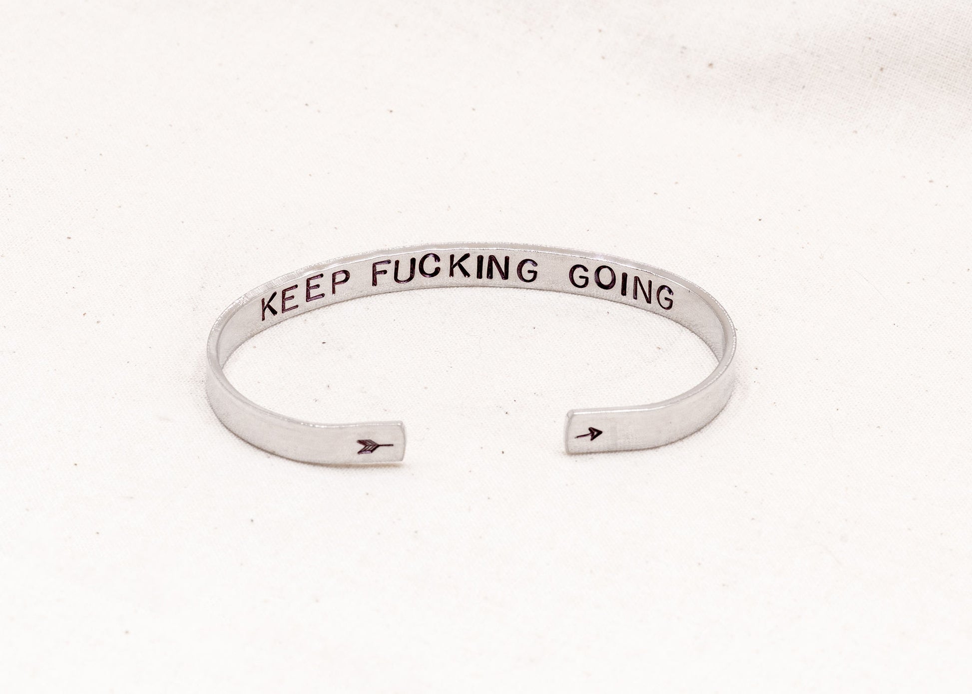 Wear this cuff as a reminder to "Keep Fucking Going" because let's face it... we all need a reminder every now and again.